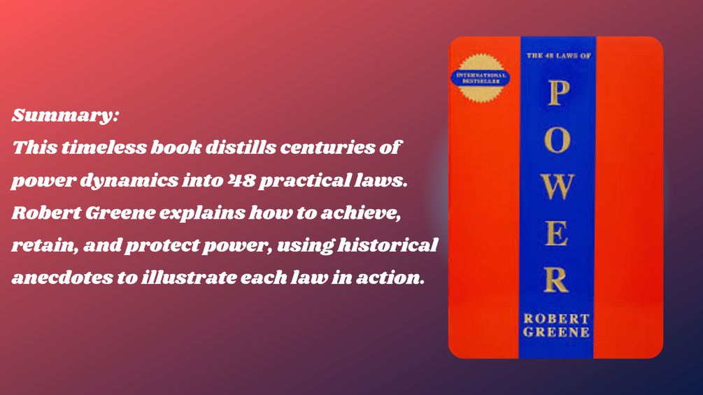 Discover the timeless wisdom and powerful insights in 48 Laws of Power by Robert Greene, a bestselling classic that explores the art of influence and strategies for success. Whether you’re navigating personal relationships, advancing in your career, or seeking to understand the psychology behind power dynamics, this book offers essential lessons drawn from historical figures, thinkers, and leaders.