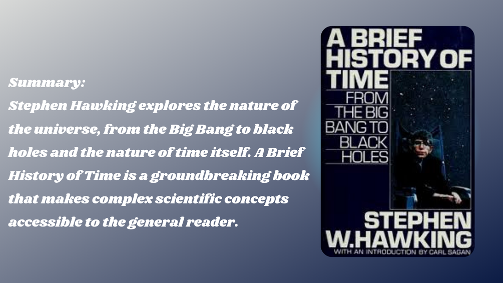 "A Brief History of Time" is a landmark book that explains complex scientific concepts in simple terms. First published in 1988, this classic book: